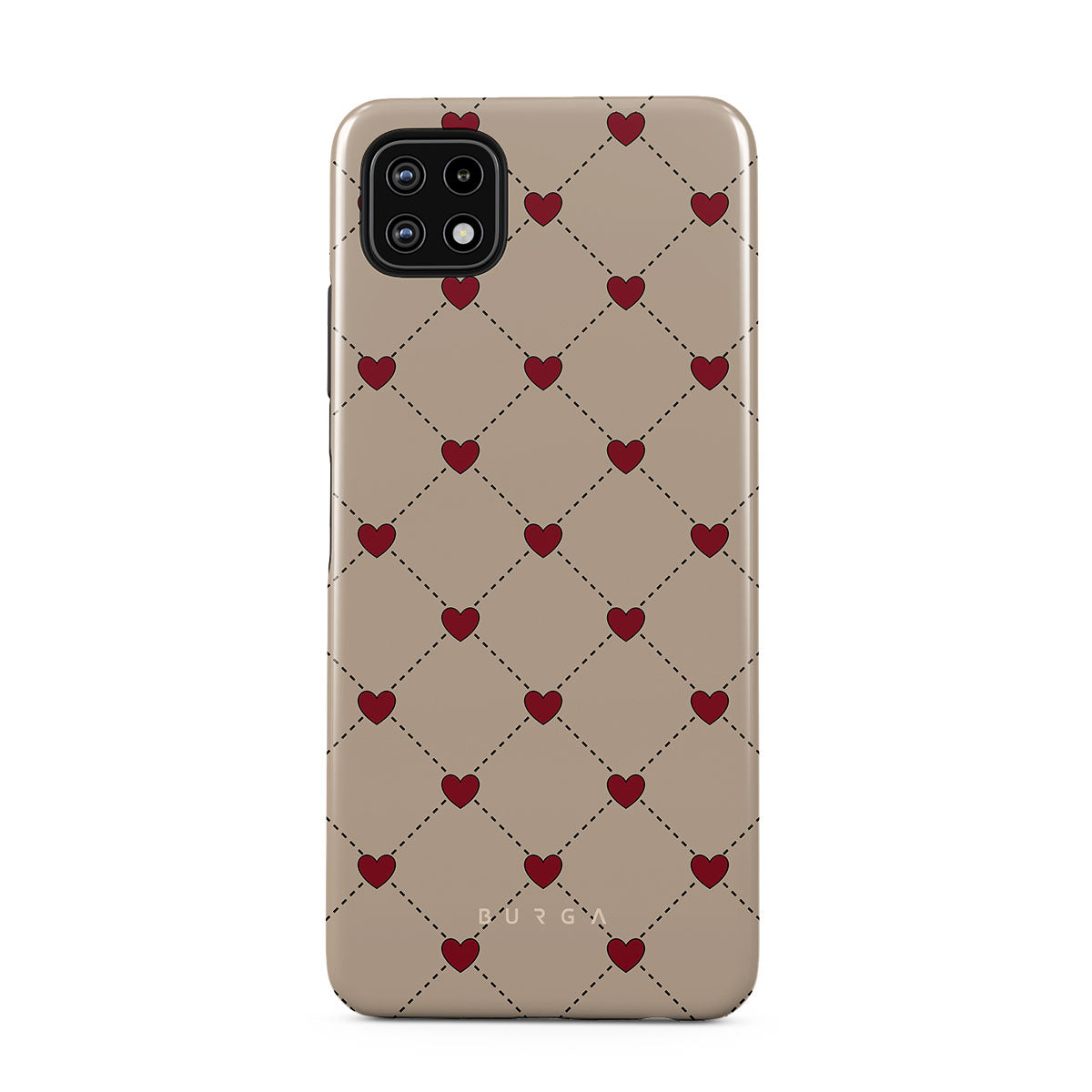 Secrets of the heart whispered between elegant beige diamonds. Every moment, a red heart shimmers—a hidden message, a silent wish, a love letter to the beholder. Discover our Love Letter Samsung Galaxy A22 5G Case phone case design.
