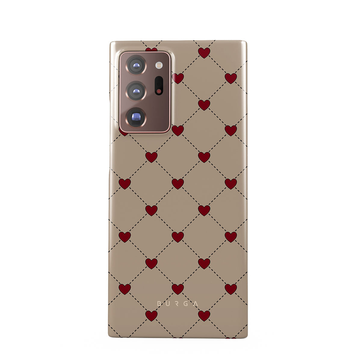 Secrets of the heart whispered between elegant beige diamonds. Every moment, a red heart shimmers—a hidden message, a silent wish, a love letter to the beholder. Discover our Love Letter Samsung Galaxy Note 20 Ultra 4G / 5G Case phone case design.