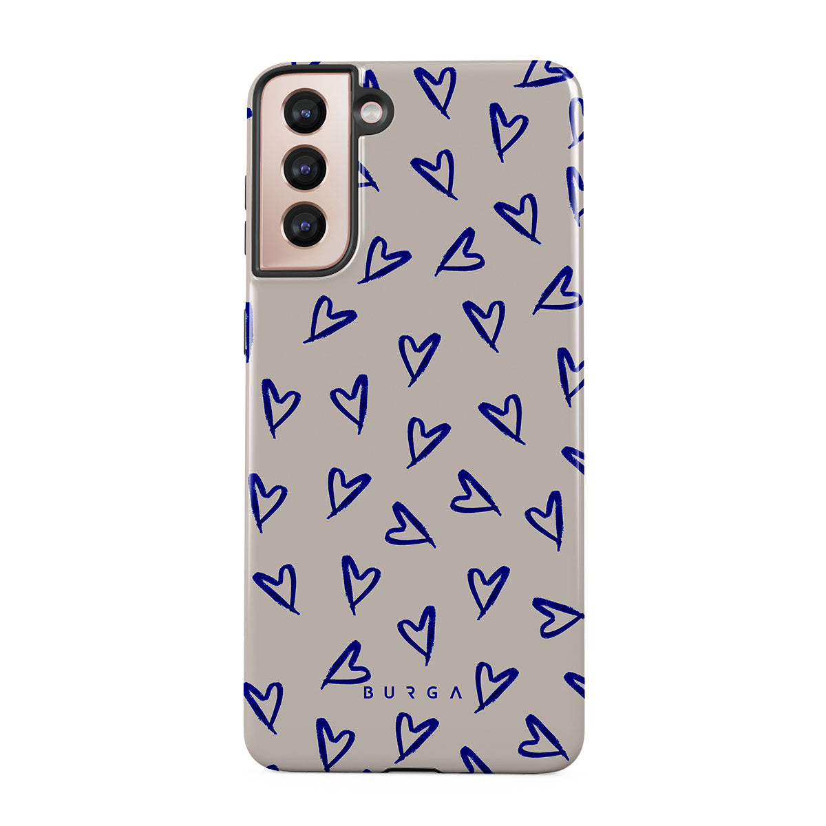 Let your Samsung Galaxy S21 Plus phone case be the declaration of passion it deserves with the charming Love Me Right design. The soft powder pink background and playful blue hearts create a whimsical and endearing look, making this case the perfect way to show off your loving yet cheeky side.