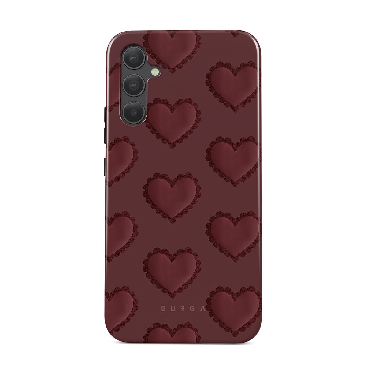 This Samsung Galaxy A34 phone case design is a bold declaration for those addicted to the rush of love. Deep red hearts stitched like scars of passion, Loveholic wears its emotions on its sleeve. It’s messy, intense, and intoxicating—a celebration of those who live for the thrill of surrendering completely to what sets their soul on fire.