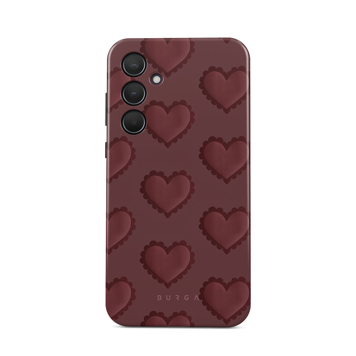 This Samsung Galaxy A35 phone case design is a bold declaration for those addicted to the rush of love. Deep red hearts stitched like scars of passion, Loveholic wears its emotions on its sleeve. It’s messy, intense, and intoxicating—a celebration of those who live for the thrill of surrendering completely to what sets their soul on fire.