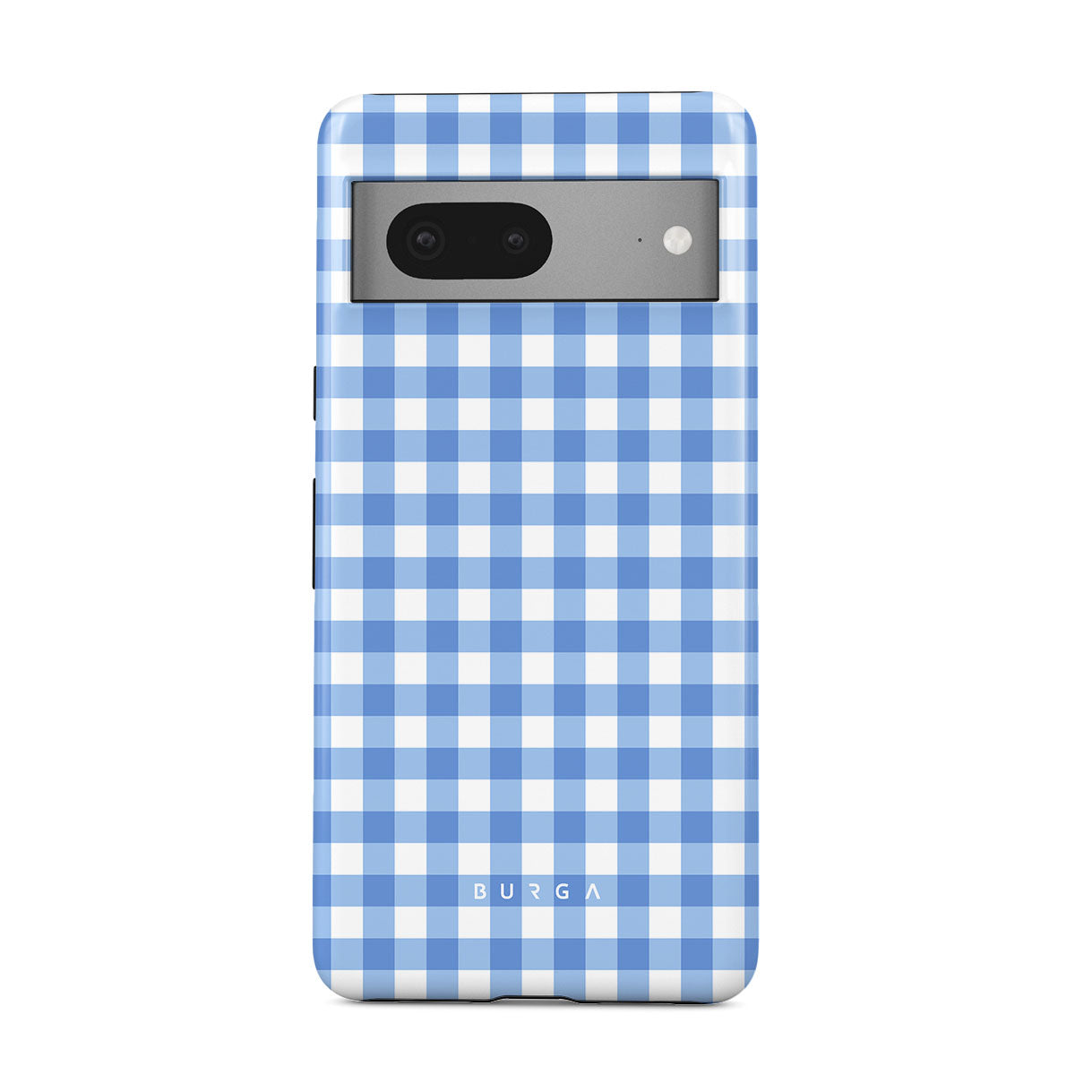 Crisp blue checks are your invitation to lay on the grass, look up at the sky, and find shapes in the clouds—simple joys that make any day lovely. That’s our Lovely Day Google Pixel 7 phone case design.