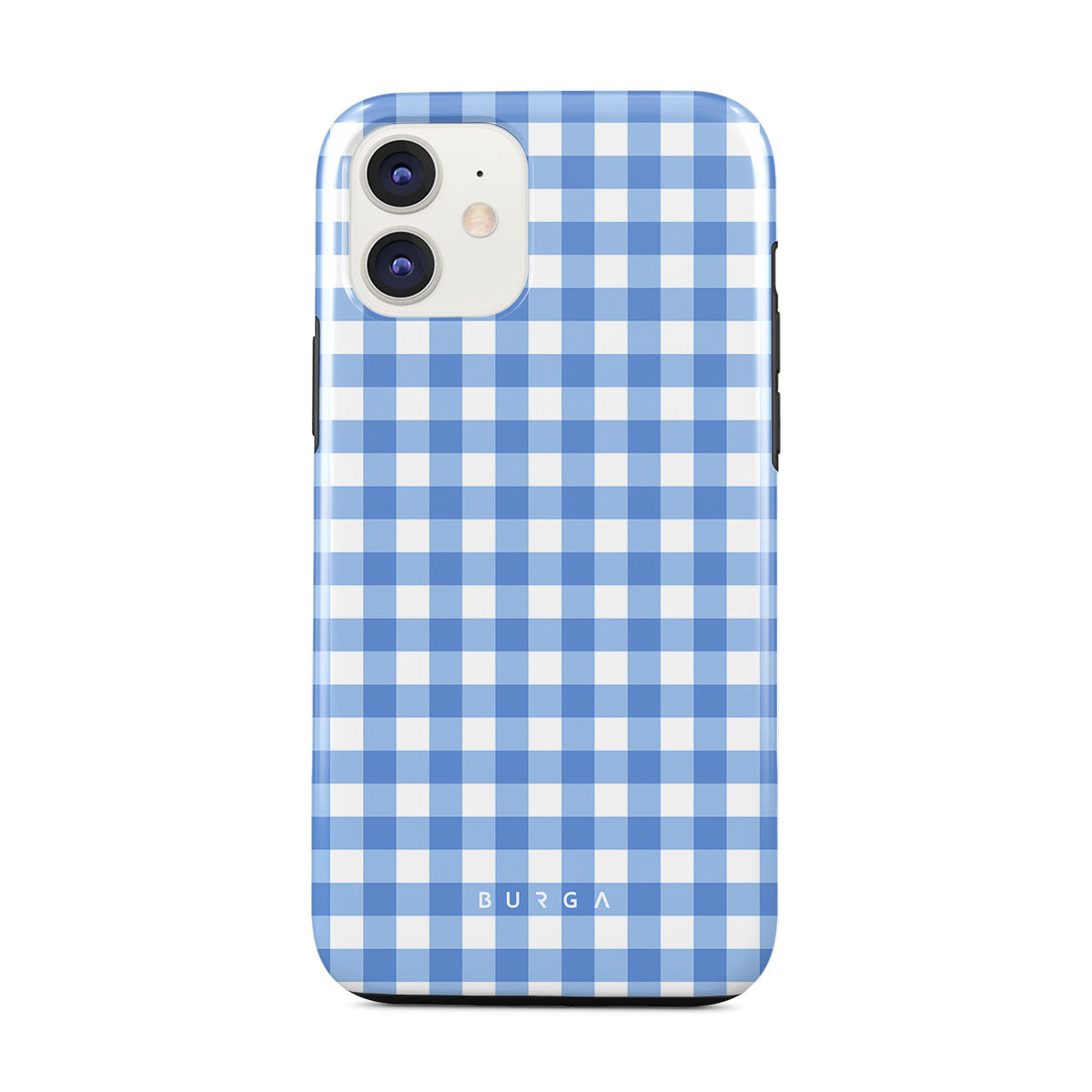 Crisp blue checks are your invitation to lay on the grass, look up at the sky, and find shapes in the clouds—simple joys that make any day lovely. That’s our Lovely Day iPhone 11 phone case design.