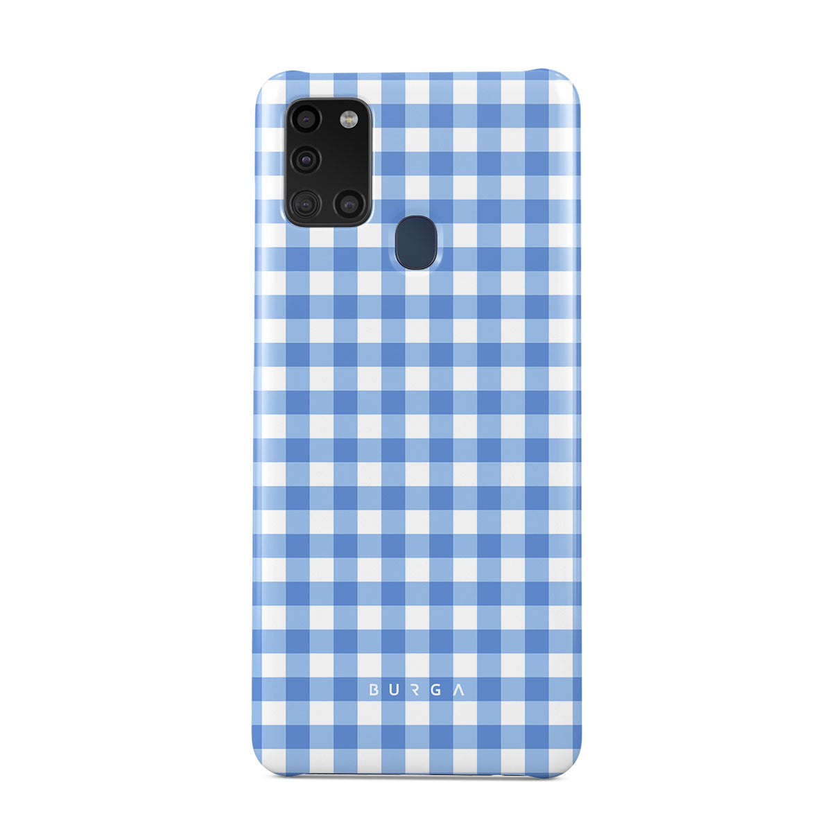 Crisp blue checks are your invitation to lay on the grass, look up at the sky, and find shapes in the clouds—simple joys that make any day lovely. That’s our Lovely Day Samsung Galaxy A21s 4G phone case design.
