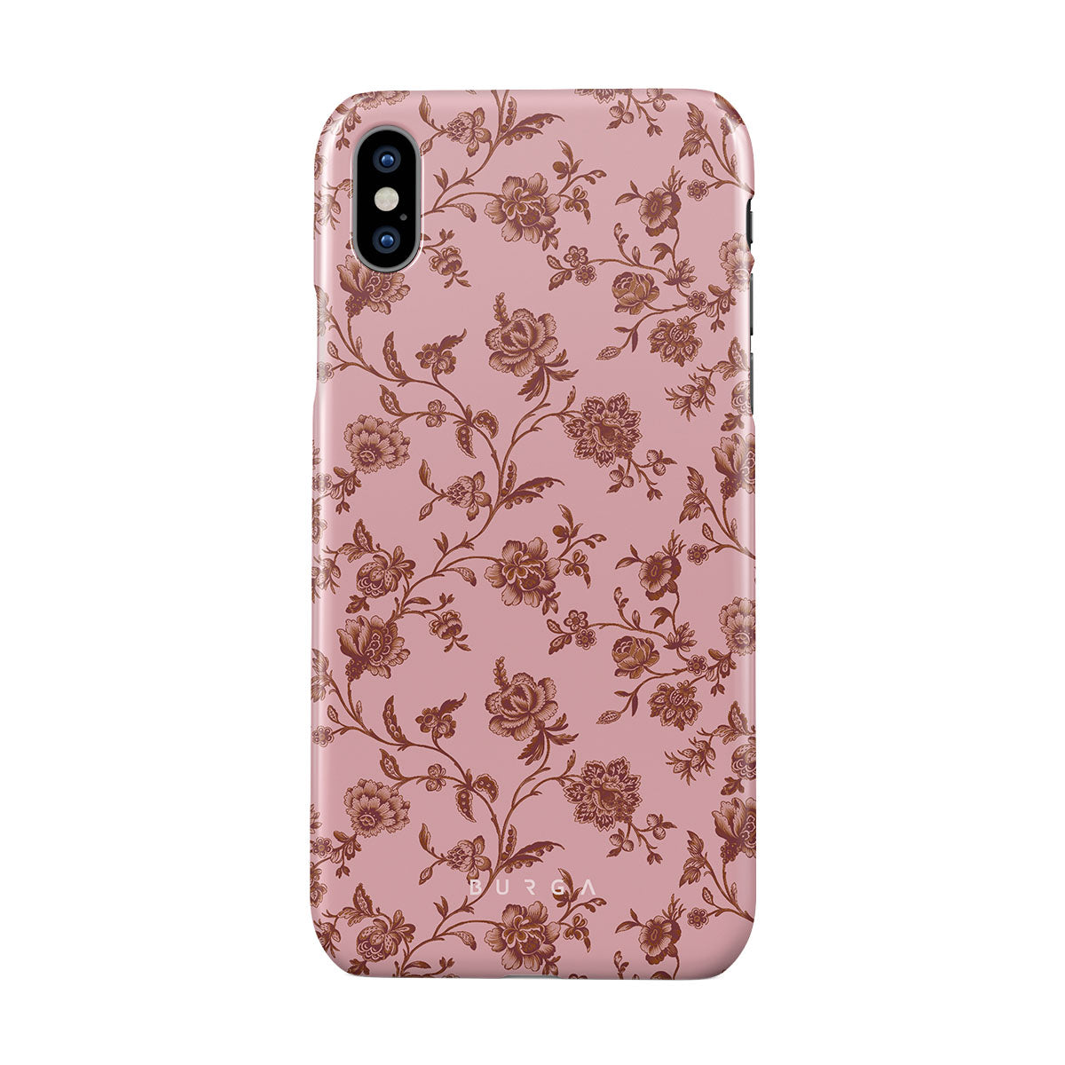The Lover iPhone XS Max phone case design: because you're a Lover, not a fighter. Delicate floral motifs across a soft pink background capture the essence of timeless beauty and rustic elegance. Perfect for modern-day cowgirls with a vintage heart.