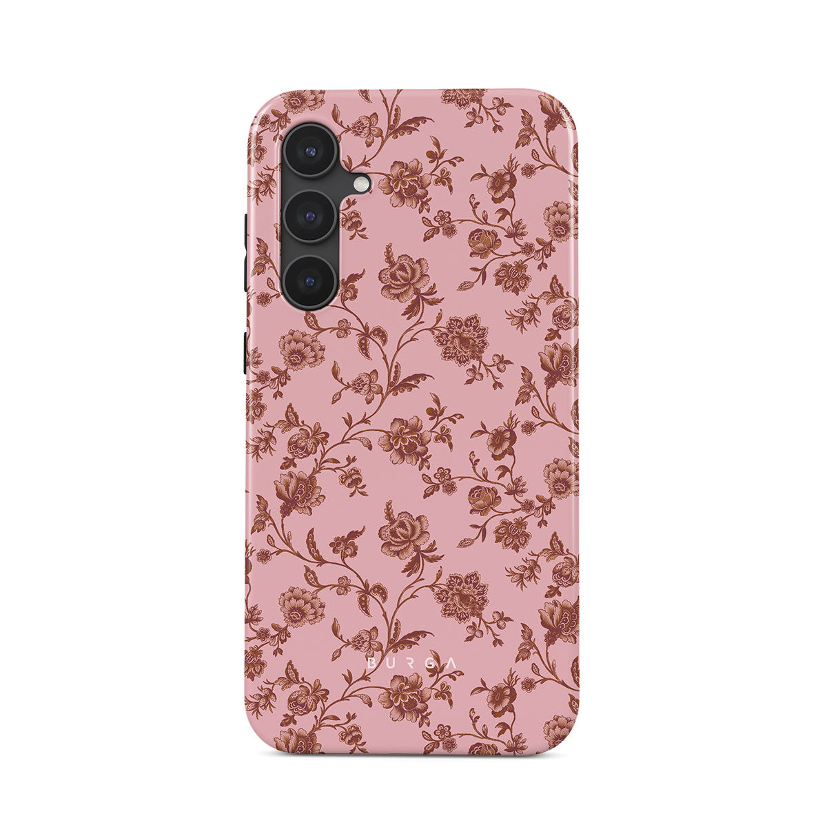 The Lover Samsung Galaxy S23 FE phone case design: because you're a Lover, not a fighter. Delicate floral motifs across a soft pink background capture the essence of timeless beauty and rustic elegance. Perfect for modern-day cowgirls with a vintage heart.