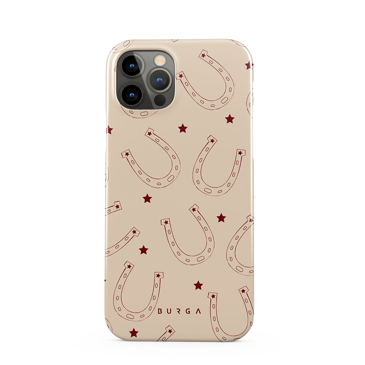 Horseshoes for luck, stars for style. Keep fortune on your side with our Lucky Charm iPhone 12 Pro Max phone case. This design is a playful take on traditional symbols of luck. The earthy tones make it a versatile accessory for any western-inspired outfit—and not only.