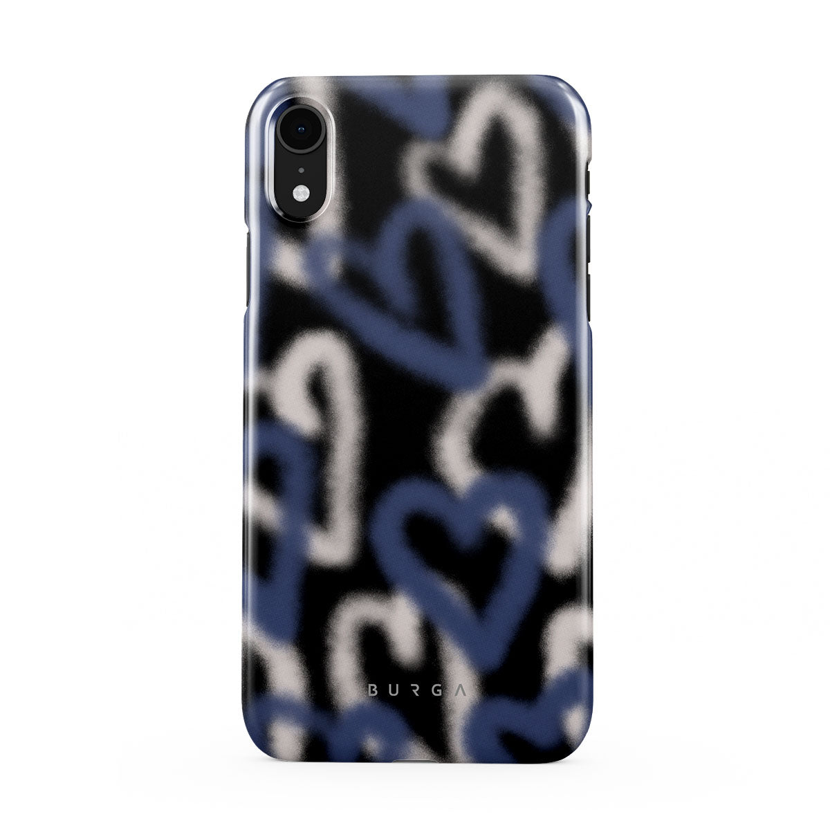 The Lucky You iPhone XR phone case captures the raw, unfiltered pulse of street art. Graffiti hearts in striking blue and white stand out against a black background, their edges softly faded. It’s a design that speaks to the restless who find beauty in chaos and dare to be different.