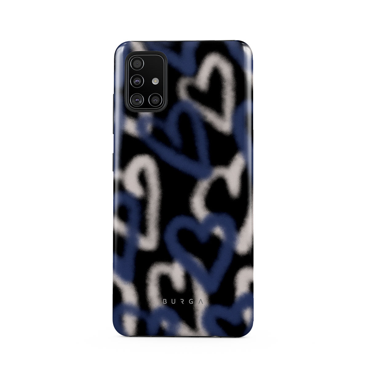 The Lucky You Samsung Galaxy A51 4G phone case captures the raw, unfiltered pulse of street art. Graffiti hearts in striking blue and white stand out against a black background, their edges softly faded. It’s a design that speaks to the restless who find beauty in chaos and dare to be different.