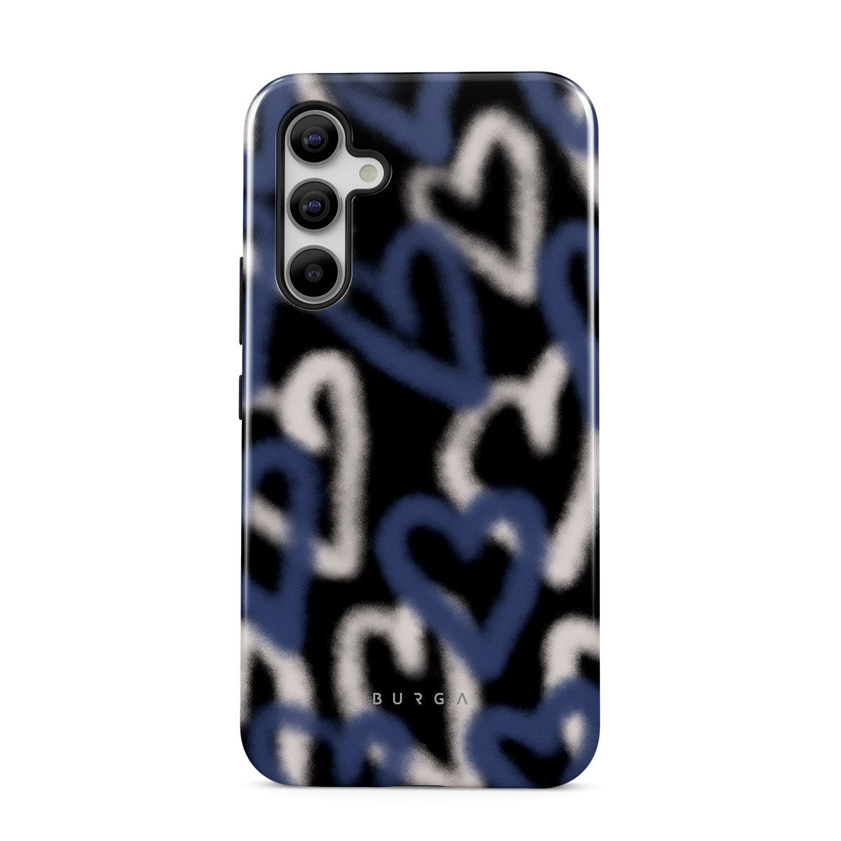 The Lucky You Samsung Galaxy A54 phone case captures the raw, unfiltered pulse of street art. Graffiti hearts in striking blue and white stand out against a black background, their edges softly faded. It’s a design that speaks to the restless who find beauty in chaos and dare to be different.