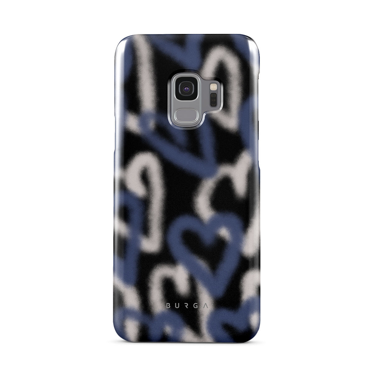 The Lucky You Samsung Galaxy S9 phone case captures the raw, unfiltered pulse of street art. Graffiti hearts in striking blue and white stand out against a black background, their edges softly faded. It’s a design that speaks to the restless who find beauty in chaos and dare to be different.