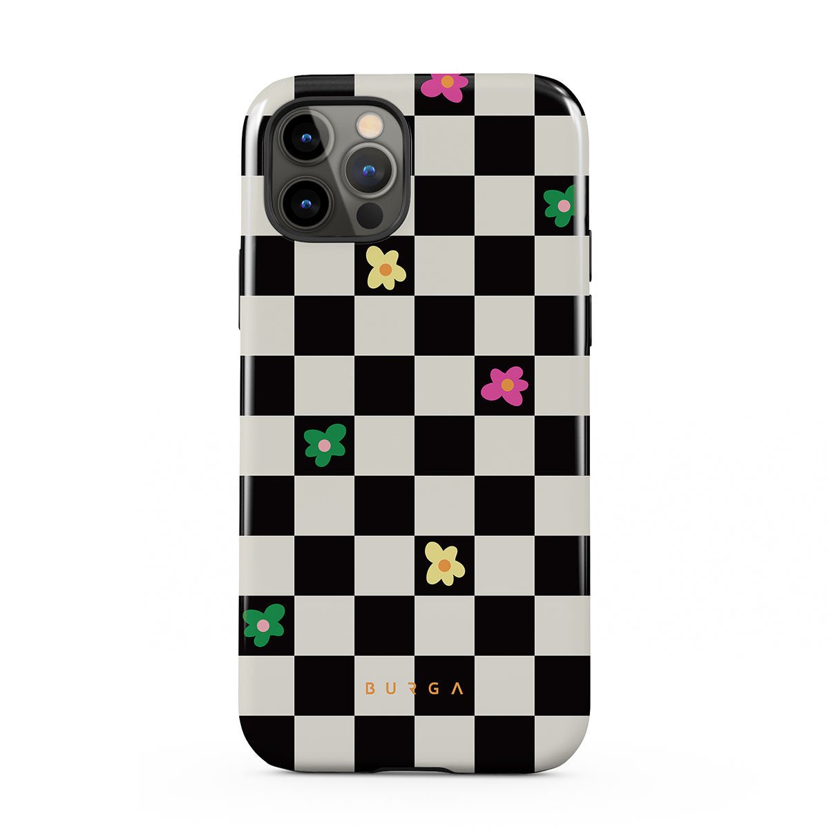 Take time to relax with our Lunch Break - iPhone 12 Pro phone case. The playful addition of colorful retro flowers to the classical black and white checkered pattern will add that extra pop of color. It will bring that much-needed *oomph* to your phone. With this playful design, you can keep your phone cute and protected!