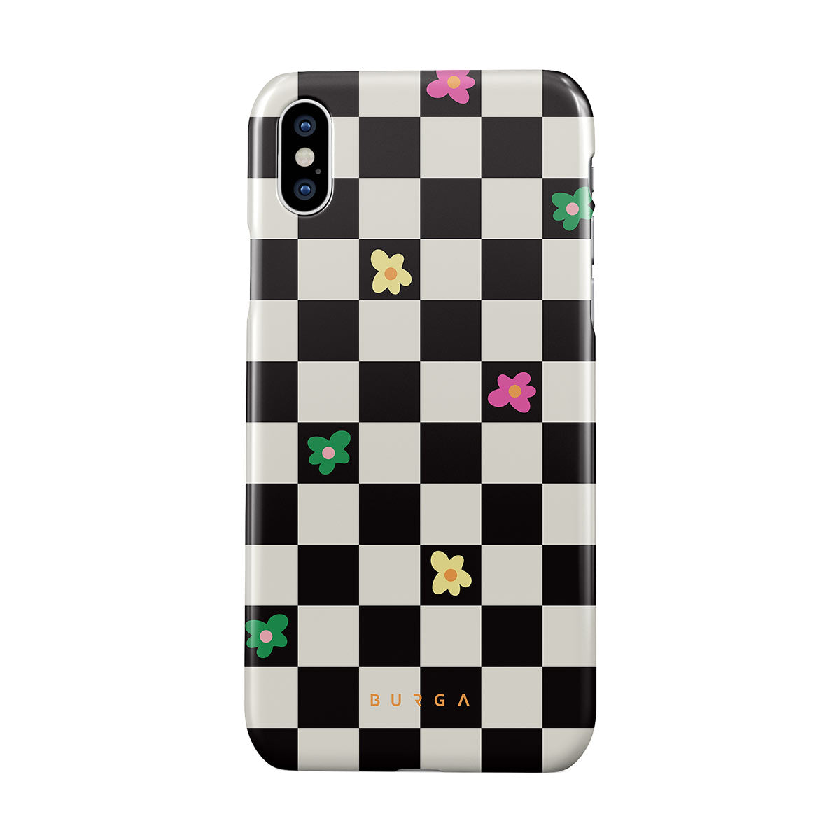 Take time to relax with our Lunch Break - iPhone X / XS phone case. The playful addition of colorful retro flowers to the classical black and white checkered pattern will add that extra pop of color. It will bring that much-needed *oomph* to your phone. With this playful design, you can keep your phone cute and protected!