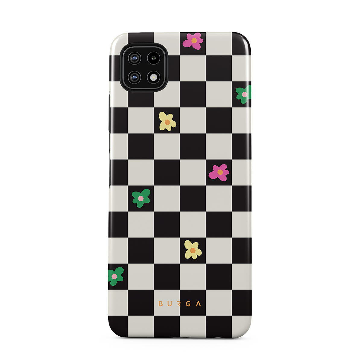 Take time to relax with our Lunch Break - Samsung Galaxy A22 5G phone case. The playful addition of colorful retro flowers to the classical black and white checkered pattern will add that extra pop of color. It will bring that much-needed *oomph* to your phone. With this playful design, you can keep your phone cute and protected!