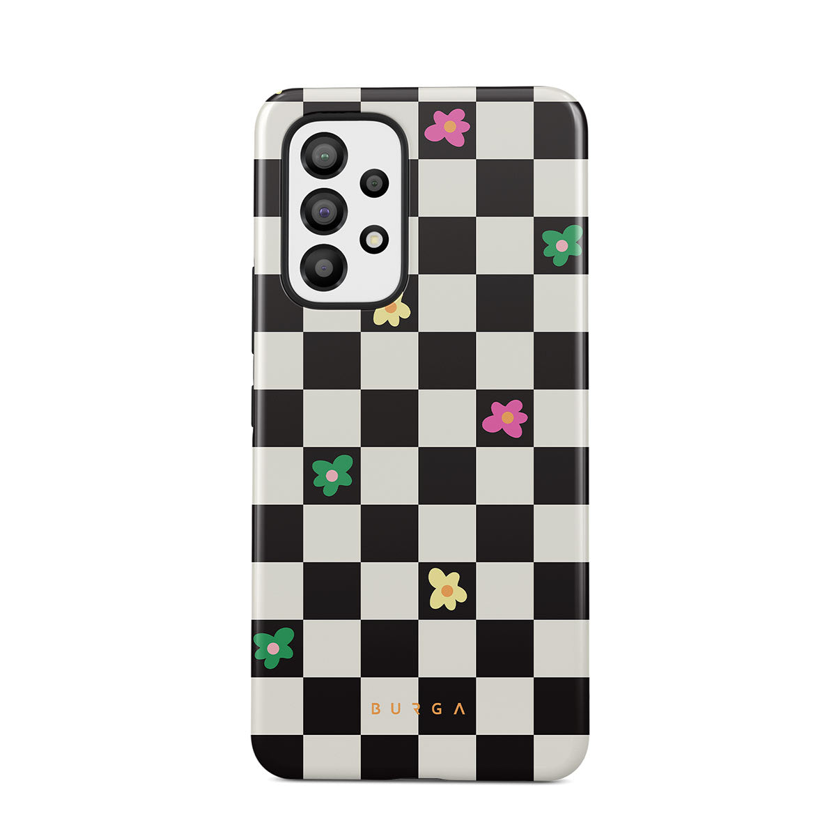 Take time to relax with our Lunch Break - Samsung Galaxy A53 phone case. The playful addition of colorful retro flowers to the classical black and white checkered pattern will add that extra pop of color. It will bring that much-needed *oomph* to your phone. With this playful design, you can keep your phone cute and protected!
