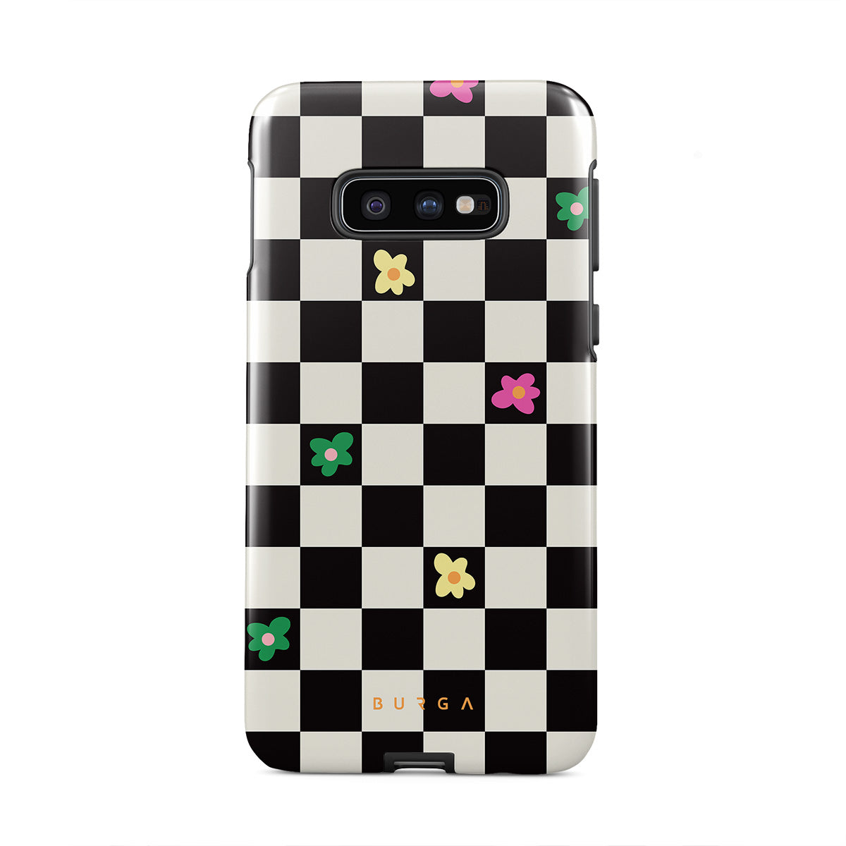 Take time to relax with our Lunch Break - Samsung Galaxy S10E phone case. The playful addition of colorful retro flowers to the classical black and white checkered pattern will add that extra pop of color. It will bring that much-needed *oomph* to your phone. With this playful design, you can keep your phone cute and protected!