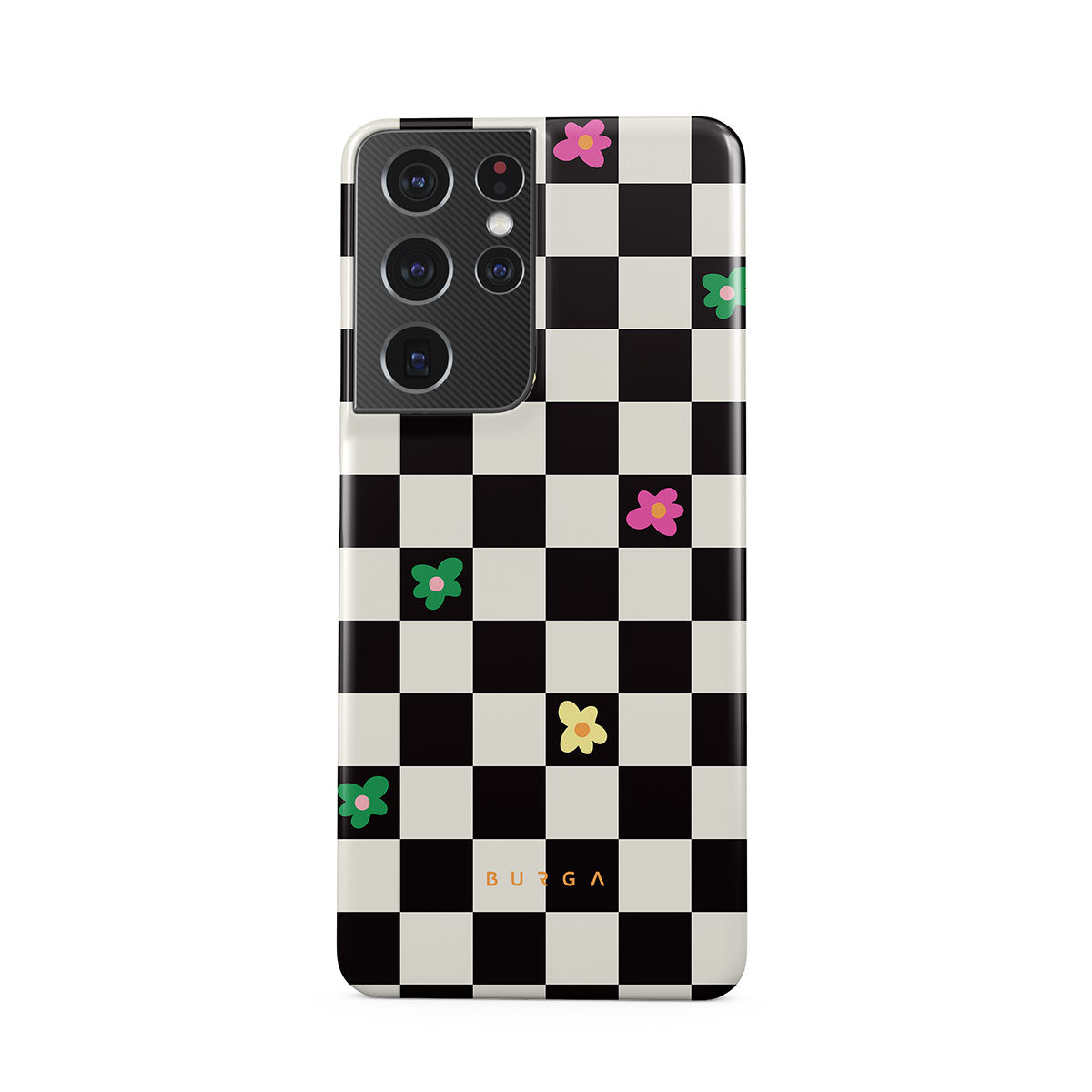 Take time to relax with our Lunch Break - Samsung Galaxy S21 Ultra phone case. The playful addition of colorful retro flowers to the classical black and white checkered pattern will add that extra pop of color. It will bring that much-needed *oomph* to your phone. With this playful design, you can keep your phone cute and protected!