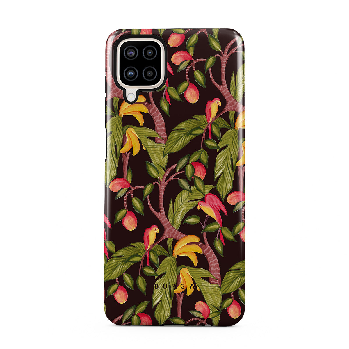 A lush botanical fantasy where ripe mangoes hang like forbidden fruit. Deep greens and juicy oranges pull you into a tropical escape. If this Samsung Galaxy A12 4G phone case design had a voice, it would purr.