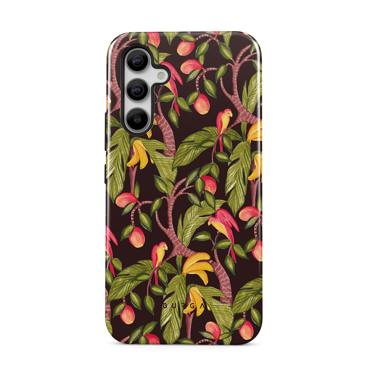 A lush botanical fantasy where ripe mangoes hang like forbidden fruit. Deep greens and juicy oranges pull you into a tropical escape. If this Samsung Galaxy A55 phone case design had a voice, it would purr.