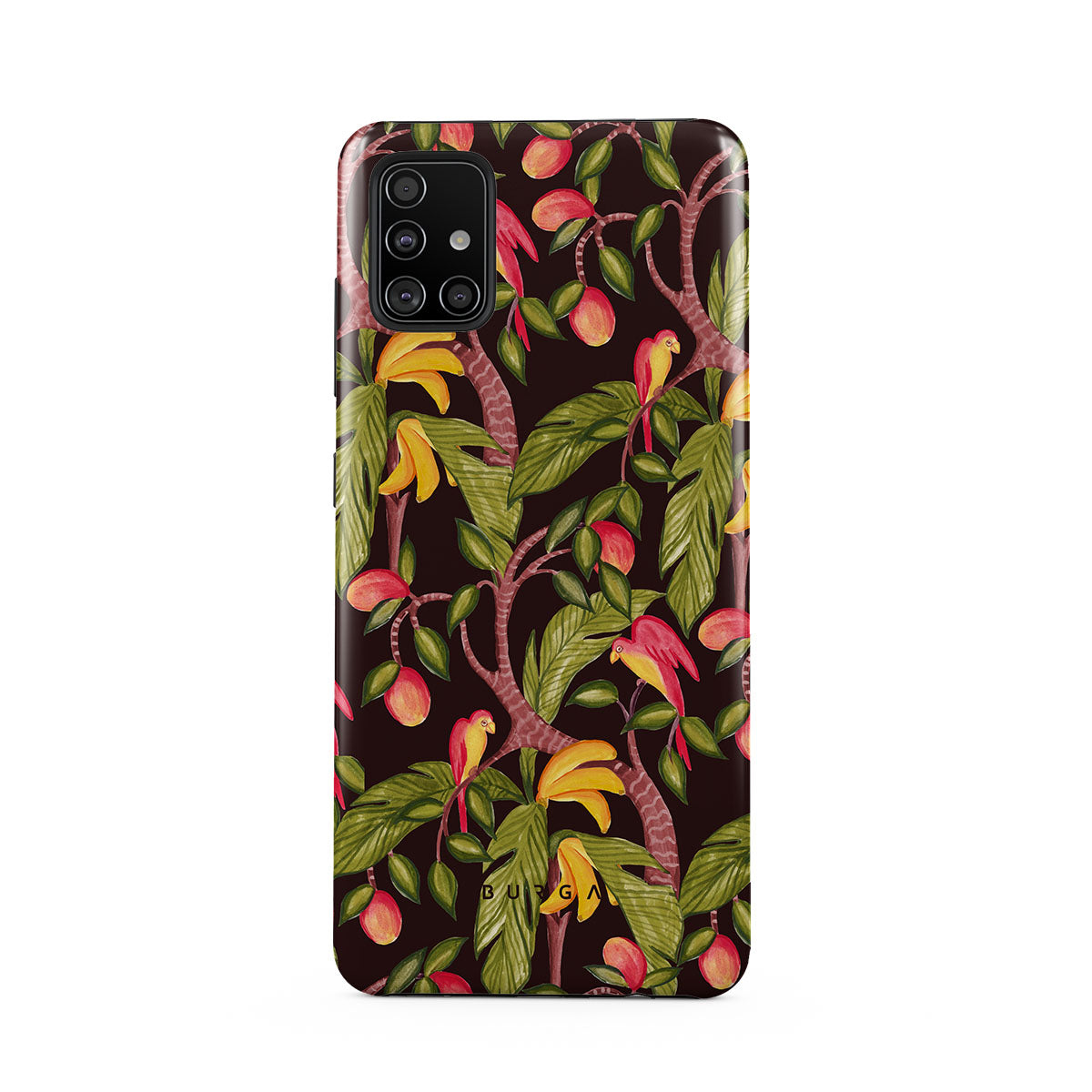 A lush botanical fantasy where ripe mangoes hang like forbidden fruit. Deep greens and juicy oranges pull you into a tropical escape. If this Samsung Galaxy A71 4G phone case design had a voice, it would purr.