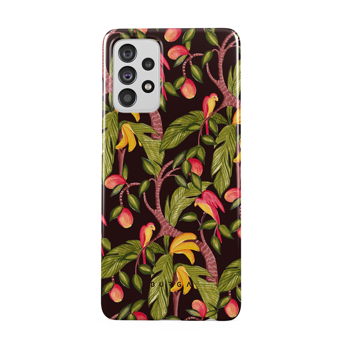 A lush botanical fantasy where ripe mangoes hang like forbidden fruit. Deep greens and juicy oranges pull you into a tropical escape. If this Samsung Galaxy A72 4G / 5G phone case design had a voice, it would purr.