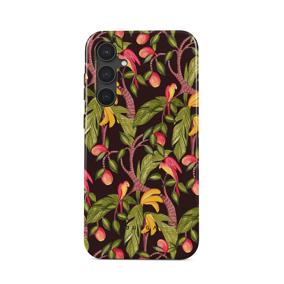 A lush botanical fantasy where ripe mangoes hang like forbidden fruit. Deep greens and juicy oranges pull you into a tropical escape. If this Samsung Galaxy S23 FE phone case design had a voice, it would purr.