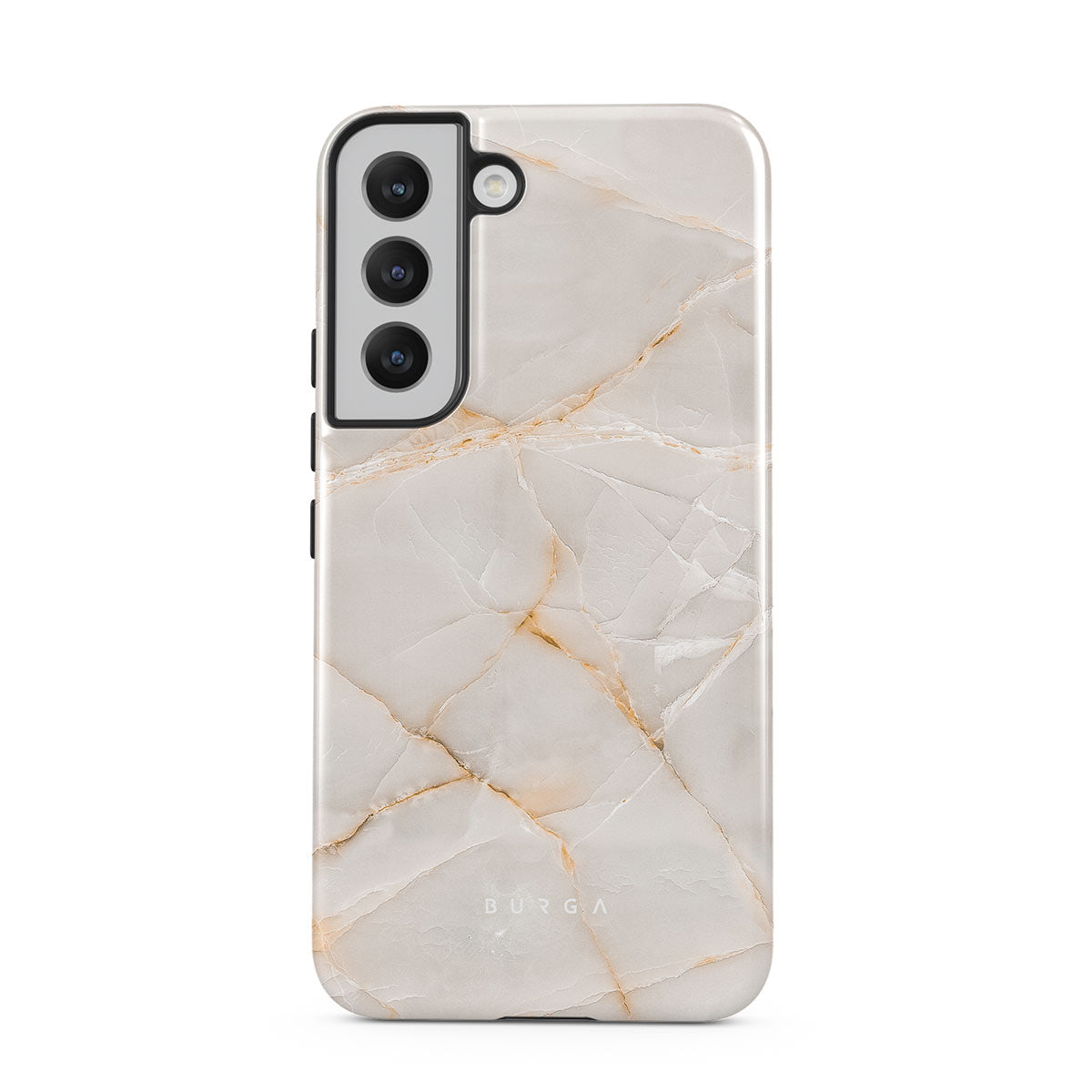 The Vanilla Sand Marble Samsung Galaxy S22 Plus phone case cover features a marble design with creamy canvas showcasing beautiful golden hues. The soft-toned case will add a touch of luxury to the device while protecting it from dangerous falls.