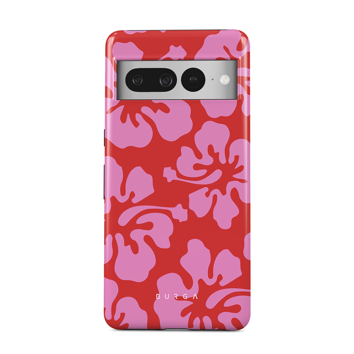 Dive into a sea of floral fantasy with Me Gustas Tu. Featuring oversized coral-toned blooms against a fiery backdrop, this Google Pixel 7 Pro phone case design captures the wild heart of tropical flowers—perfect for those who want to carry a touch of exotic flair.