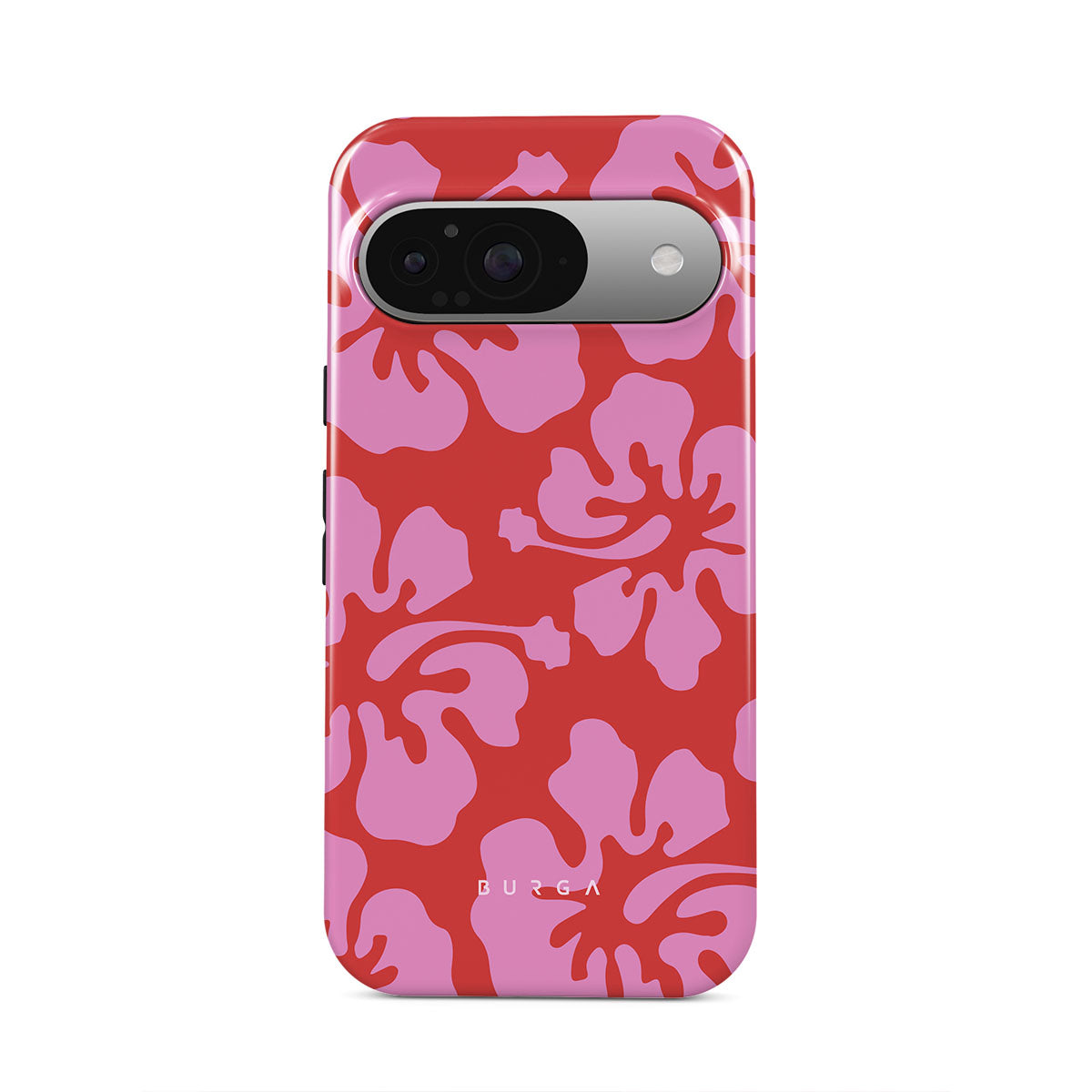 Dive into a sea of floral fantasy with Me Gustas Tu. Featuring oversized coral-toned blooms against a fiery backdrop, this Google Pixel 9 phone case design captures the wild heart of tropical flowers—perfect for those who want to carry a touch of exotic flair.