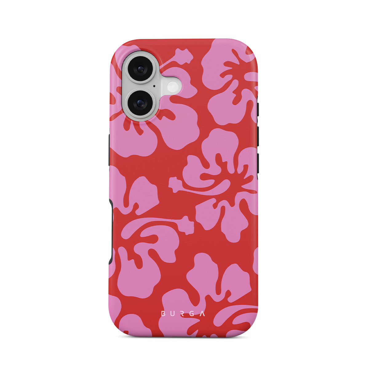 Dive into a sea of floral fantasy with Me Gustas Tu. Featuring oversized coral-toned blooms against a fiery backdrop, this iPhone 17 phone case design captures the wild heart of tropical flowers—perfect for those who want to carry a touch of exotic flair.