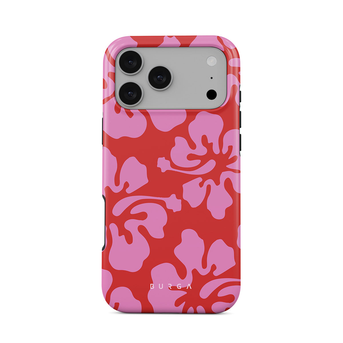 Dive into a sea of floral fantasy with Me Gustas Tu. Featuring oversized coral-toned blooms against a fiery backdrop, this iPhone 17 Pro Max phone case design captures the wild heart of tropical flowers—perfect for those who want to carry a touch of exotic flair.