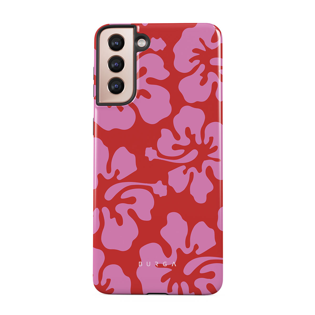 Dive into a sea of floral fantasy with Me Gustas Tu. Featuring oversized coral-toned blooms against a fiery backdrop, this Samsung Galaxy S21 Plus phone case design captures the wild heart of tropical flowers—perfect for those who want to carry a touch of exotic flair.