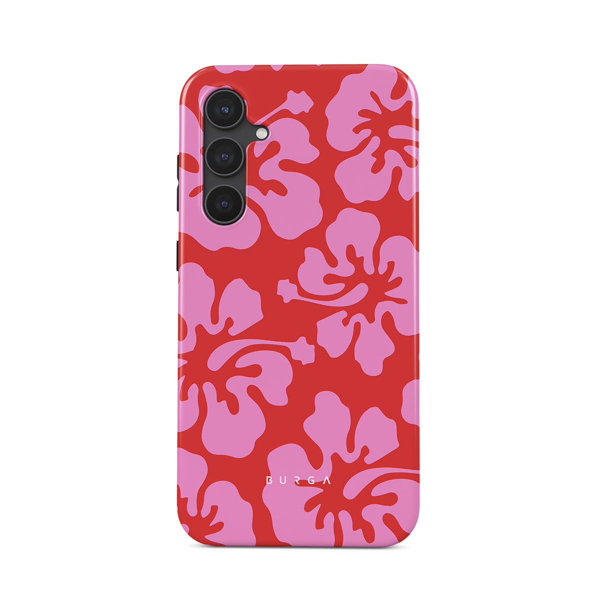 Dive into a sea of floral fantasy with Me Gustas Tu. Featuring oversized coral-toned blooms against a fiery backdrop, this Samsung Galaxy S23 FE phone case design captures the wild heart of tropical flowers—perfect for those who want to carry a touch of exotic flair.