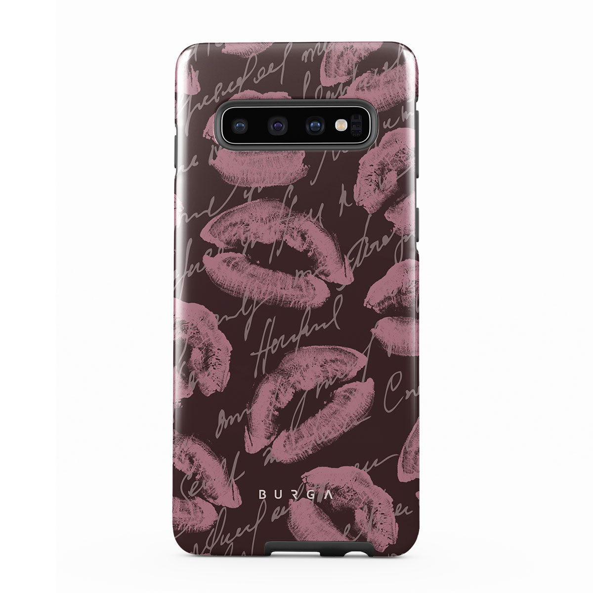 Soaked in the drama of dark pinks and adorned with the whispers of love, this design is intense, passionate, and cheeky. The Melodrama Samsung Galaxy S10 4G phone case is for the modern-day muse who isn't afraid of wearing their heart on their sleeve.