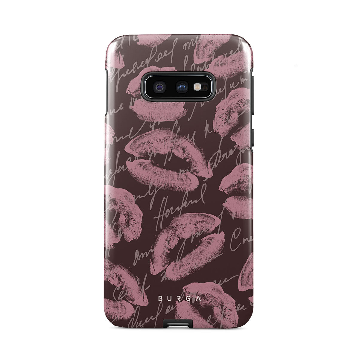 Soaked in the drama of dark pinks and adorned with the whispers of love, this design is intense, passionate, and cheeky. The Melodrama Samsung Galaxy S10E phone case is for the modern-day muse who isn't afraid of wearing their heart on their sleeve.