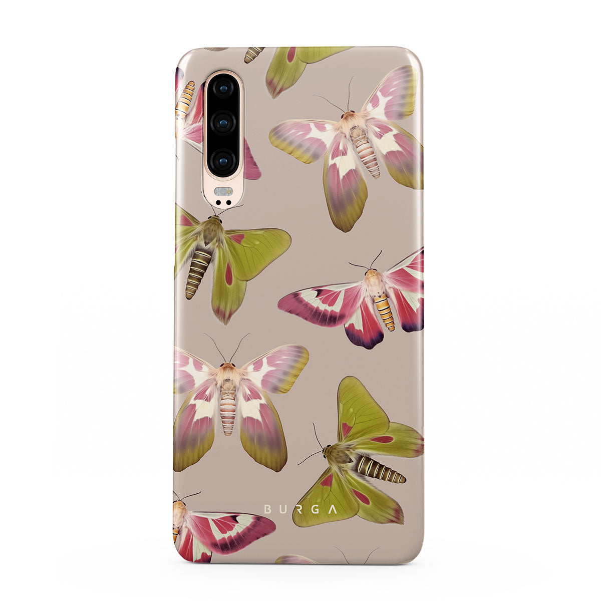 A tapestry of muted-toned moths — their wing patterns echoing tales of transformation and resilience found in nature's delicate beings. These moths, wings wide, serve as silent mentors, teaching us that every phase of life and change holds its own magic and mystery. Discover our Metamorphosis Huawei P30 phone casedesign.