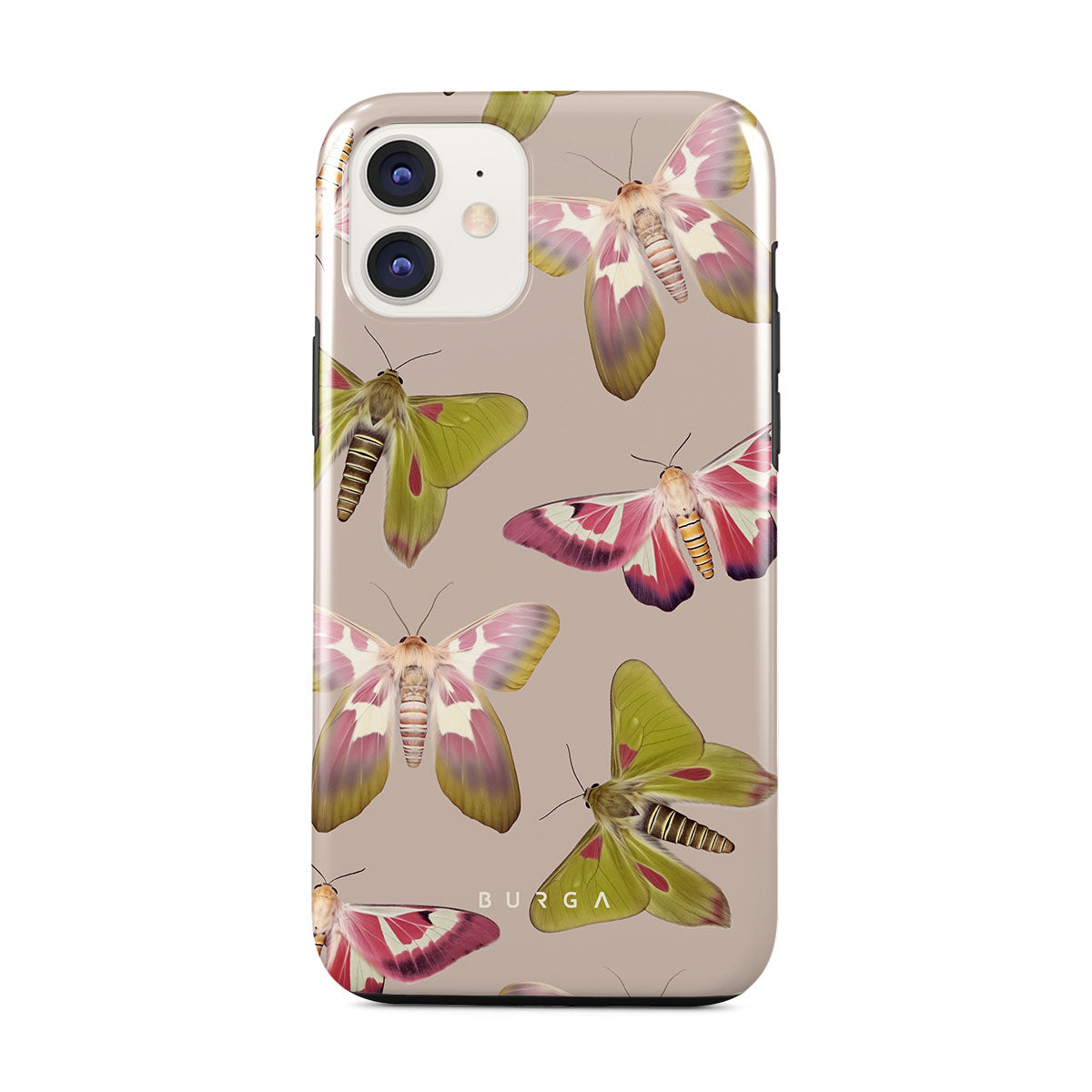 A tapestry of muted-toned moths — their wing patterns echoing tales of transformation and resilience found in nature's delicate beings. These moths, wings wide, serve as silent mentors, teaching us that every phase of life and change holds its own magic and mystery. Discover our Metamorphosis iPhone 11 phone casedesign.
