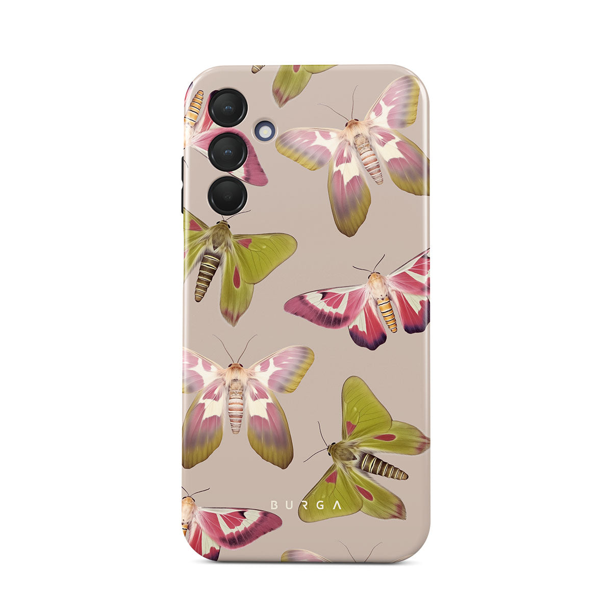 A tapestry of muted-toned moths — their wing patterns echoing tales of transformation and resilience found in nature's delicate beings. These moths, wings wide, serve as silent mentors, teaching us that every phase of life and change holds its own magic and mystery. Discover our Metamorphosis Samsung Galaxy A15 4G / 5G phone casedesign.