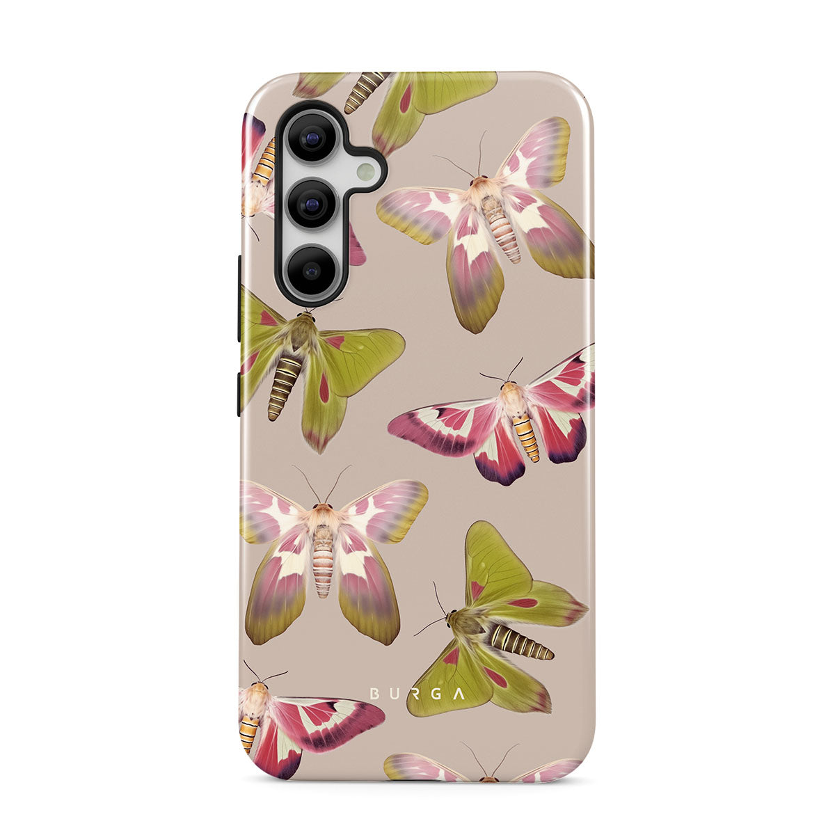 A tapestry of muted-toned moths — their wing patterns echoing tales of transformation and resilience found in nature's delicate beings. These moths, wings wide, serve as silent mentors, teaching us that every phase of life and change holds its own magic and mystery. Discover our Metamorphosis Samsung Galaxy A54 phone casedesign.
