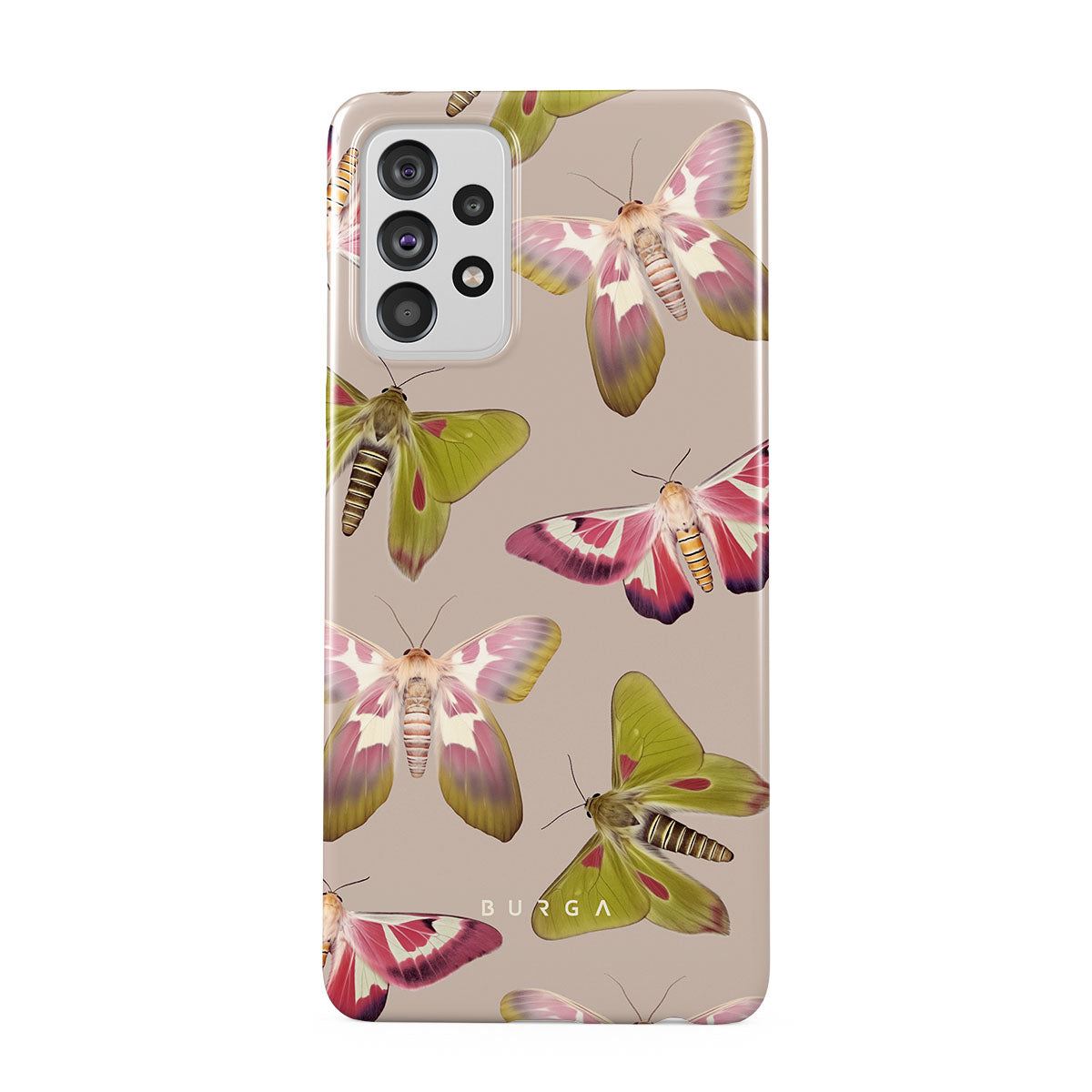 A tapestry of muted-toned moths — their wing patterns echoing tales of transformation and resilience found in nature's delicate beings. These moths, wings wide, serve as silent mentors, teaching us that every phase of life and change holds its own magic and mystery. Discover our Metamorphosis Samsung Galaxy A72 4G / 5G phone casedesign.