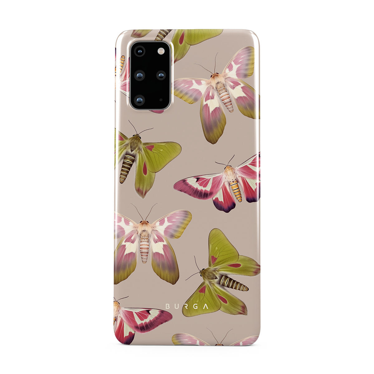 A tapestry of muted-toned moths — their wing patterns echoing tales of transformation and resilience found in nature's delicate beings. These moths, wings wide, serve as silent mentors, teaching us that every phase of life and change holds its own magic and mystery. Discover our Metamorphosis Samsung Galaxy S20 Plus 4G / 5G phone casedesign.