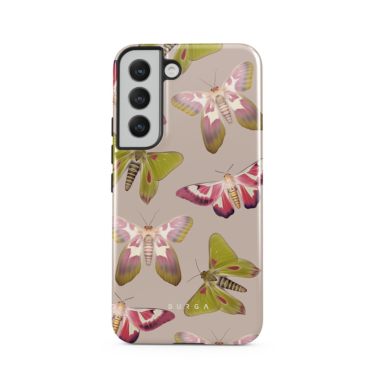 A tapestry of muted-toned moths — their wing patterns echoing tales of transformation and resilience found in nature's delicate beings. These moths, wings wide, serve as silent mentors, teaching us that every phase of life and change holds its own magic and mystery. Discover our Metamorphosis Samsung Galaxy S22 Plus phone casedesign.