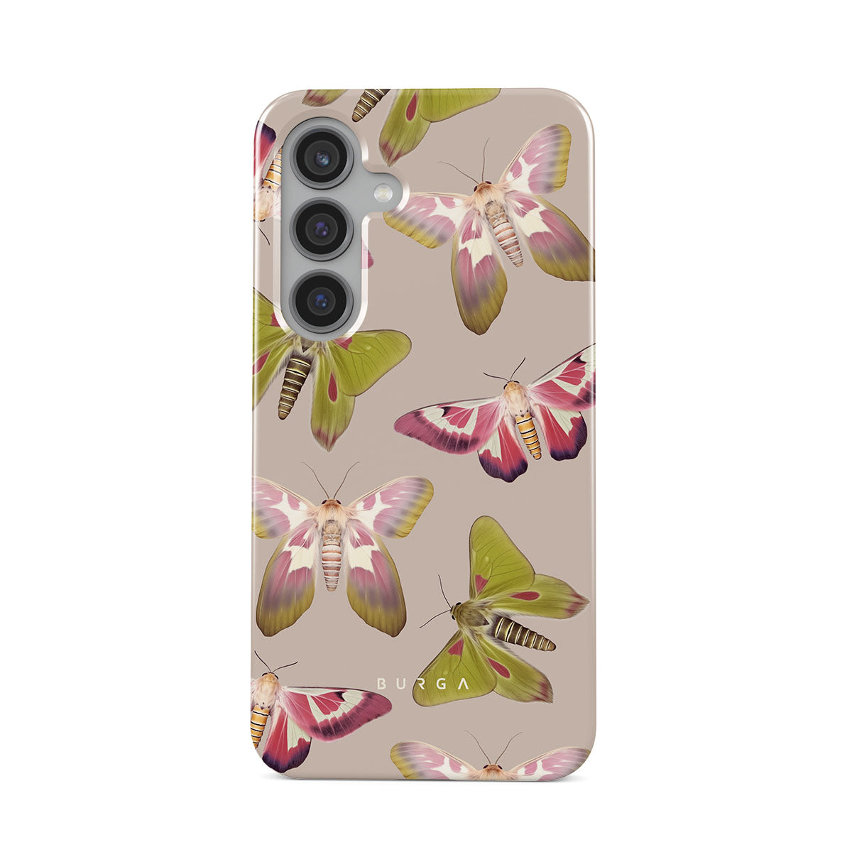 A tapestry of muted-toned moths — their wing patterns echoing tales of transformation and resilience found in nature's delicate beings. These moths, wings wide, serve as silent mentors, teaching us that every phase of life and change holds its own magic and mystery. Discover our Metamorphosis Samsung Galaxy S24 Plus phone casedesign.