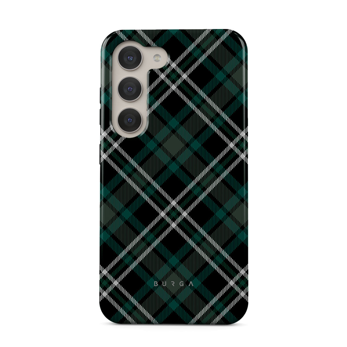 This plaid, with its rich green, black, and whispers of white, embodies elegance and versatility. Mint Cookie is a timeless Samsung Galaxy S23 Case phone case design that suits any outfit, evoking the comfort of a winter cabin yet perfect for any season.