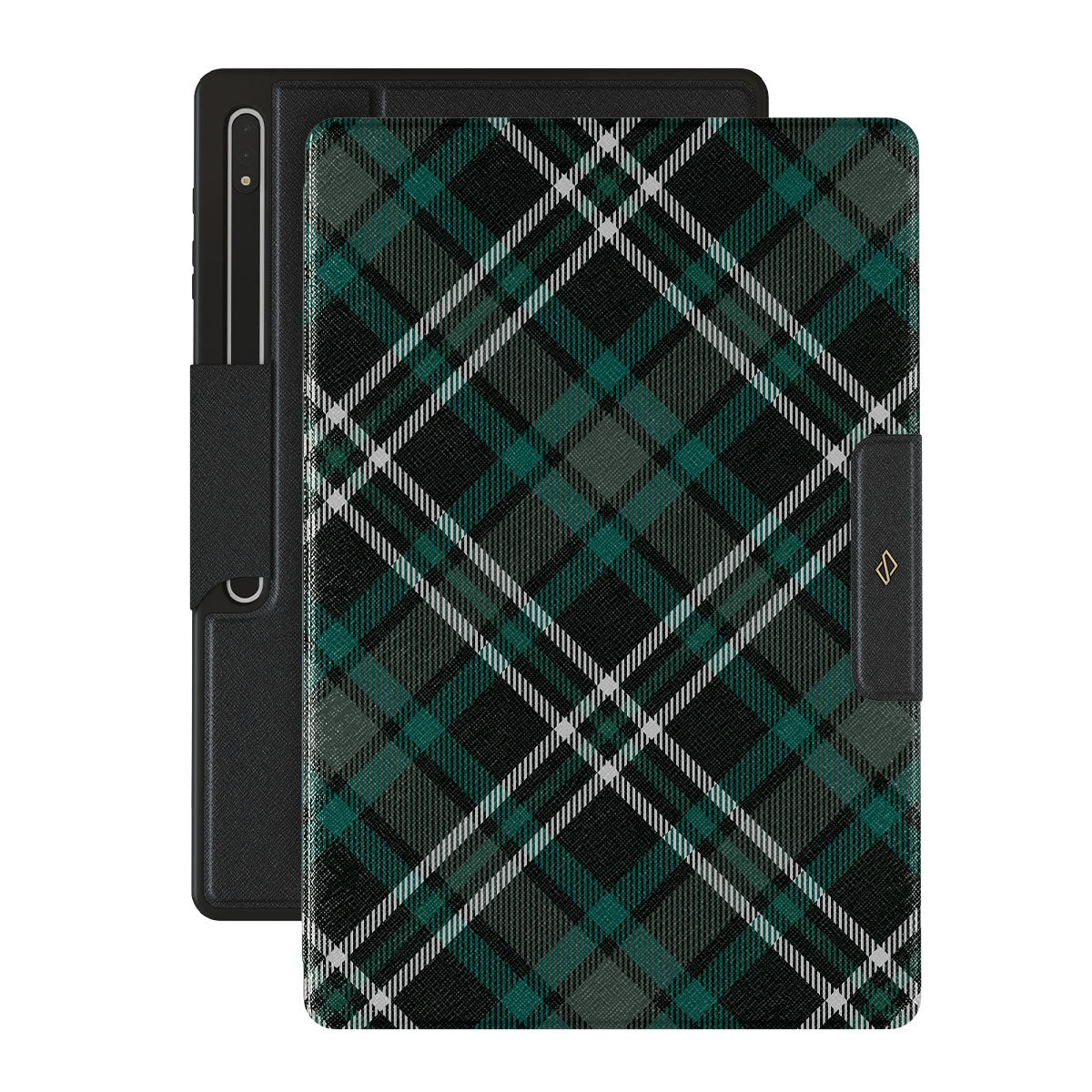 This plaid, with its rich green, black, and whispers of white, embodies elegance and versatility. Mint Cookie is a timeless Samsung Galaxy Tab S9 Ultra folio case design that suits any outfit, evoking the comfort of a winter cabin yet perfect for any season.