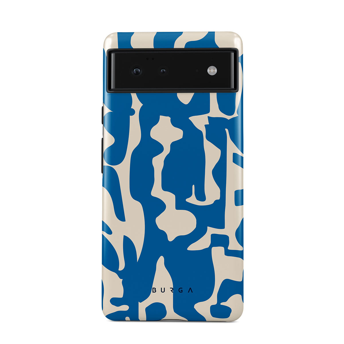 Indulge in the exquisite elegance of Mirage. Against a canvas of deep, enigmatic blue, luminous shapes gracefully disrupt the darkness, creating a captivating visual spectacle. Let this Google Pixel 6a phone case be a symbol of your impeccable taste and magnetic charm.