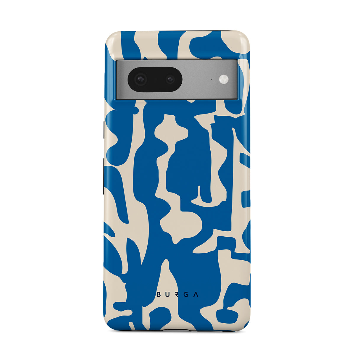 Indulge in the exquisite elegance of Mirage. Against a canvas of deep, enigmatic blue, luminous shapes gracefully disrupt the darkness, creating a captivating visual spectacle. Let this Google Pixel 7a phone case be a symbol of your impeccable taste and magnetic charm.