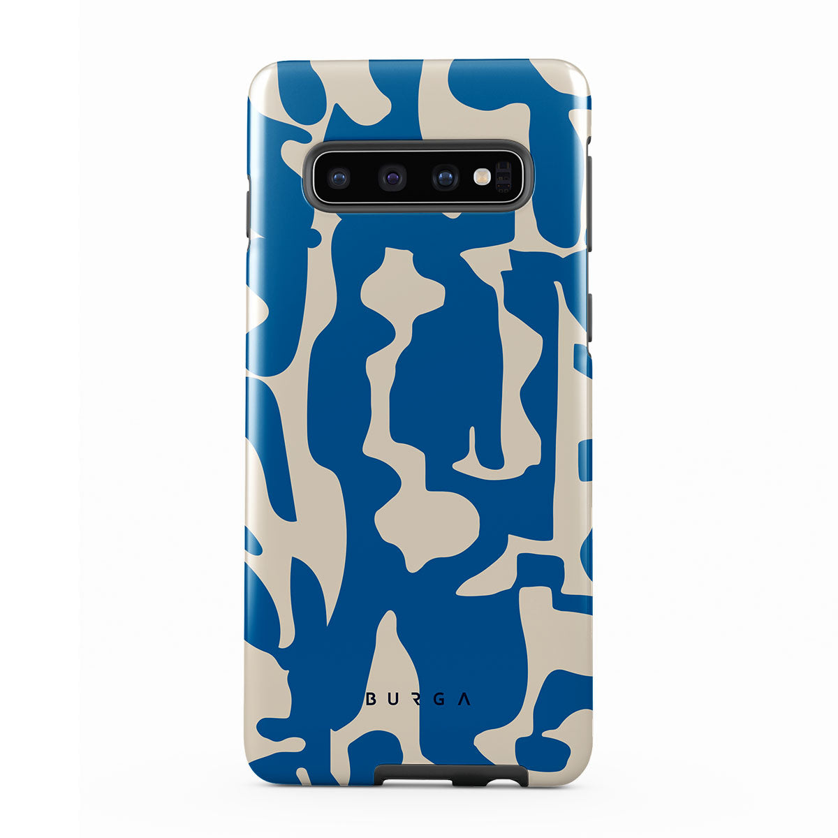 Indulge in the exquisite elegance of Mirage. Against a canvas of deep, enigmatic blue, luminous shapes gracefully disrupt the darkness, creating a captivating visual spectacle. Let this Samsung Galaxy S10 4G phone case be a symbol of your impeccable taste and magnetic charm.