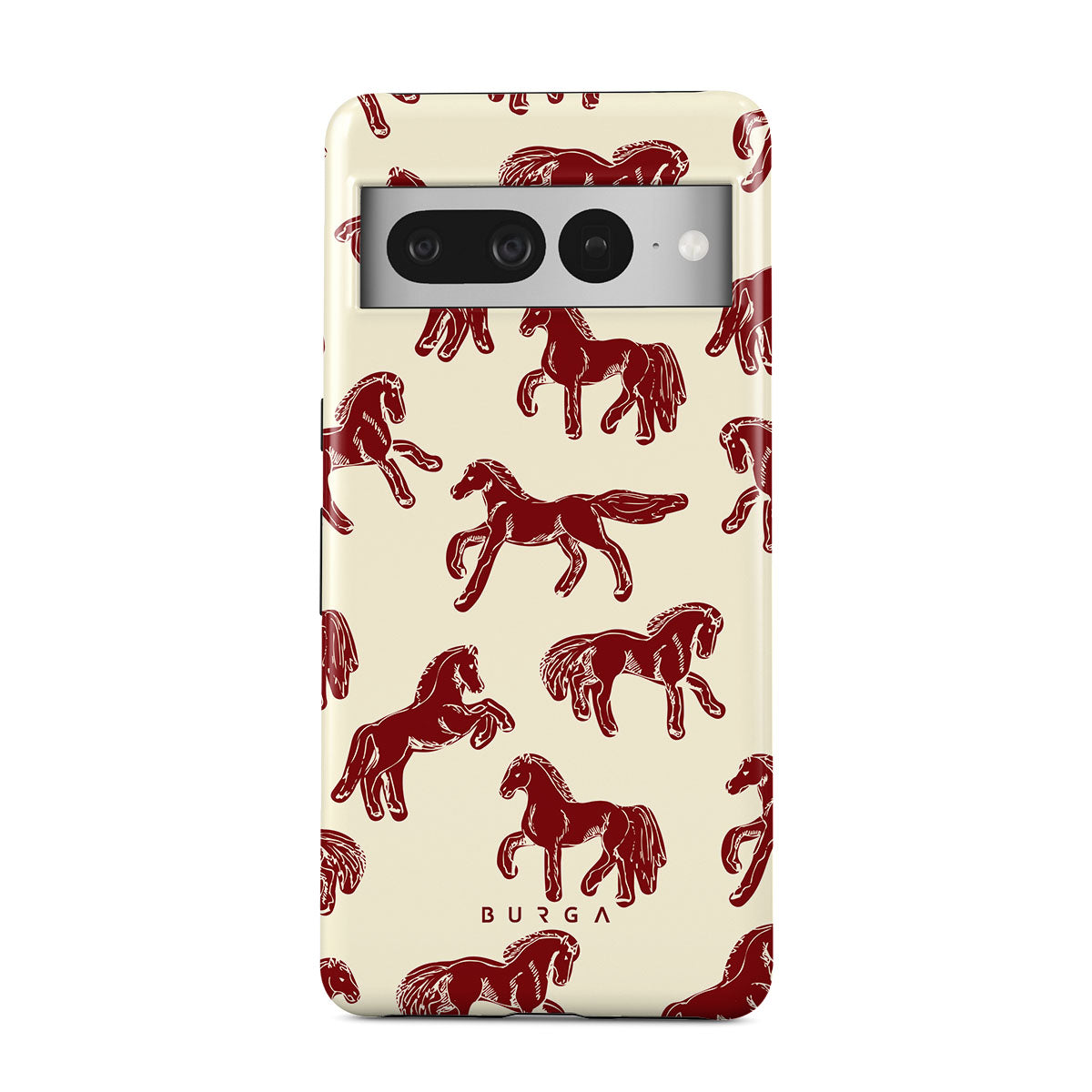 It's time to unleash your wild side with the Mustang design. Bold red horses gallop across a nude background, capturing the spirit of untamed adventure. This Google Pixel 7 Pro phone case is perfect for the free-spirited souls ready to ride into the unknown.