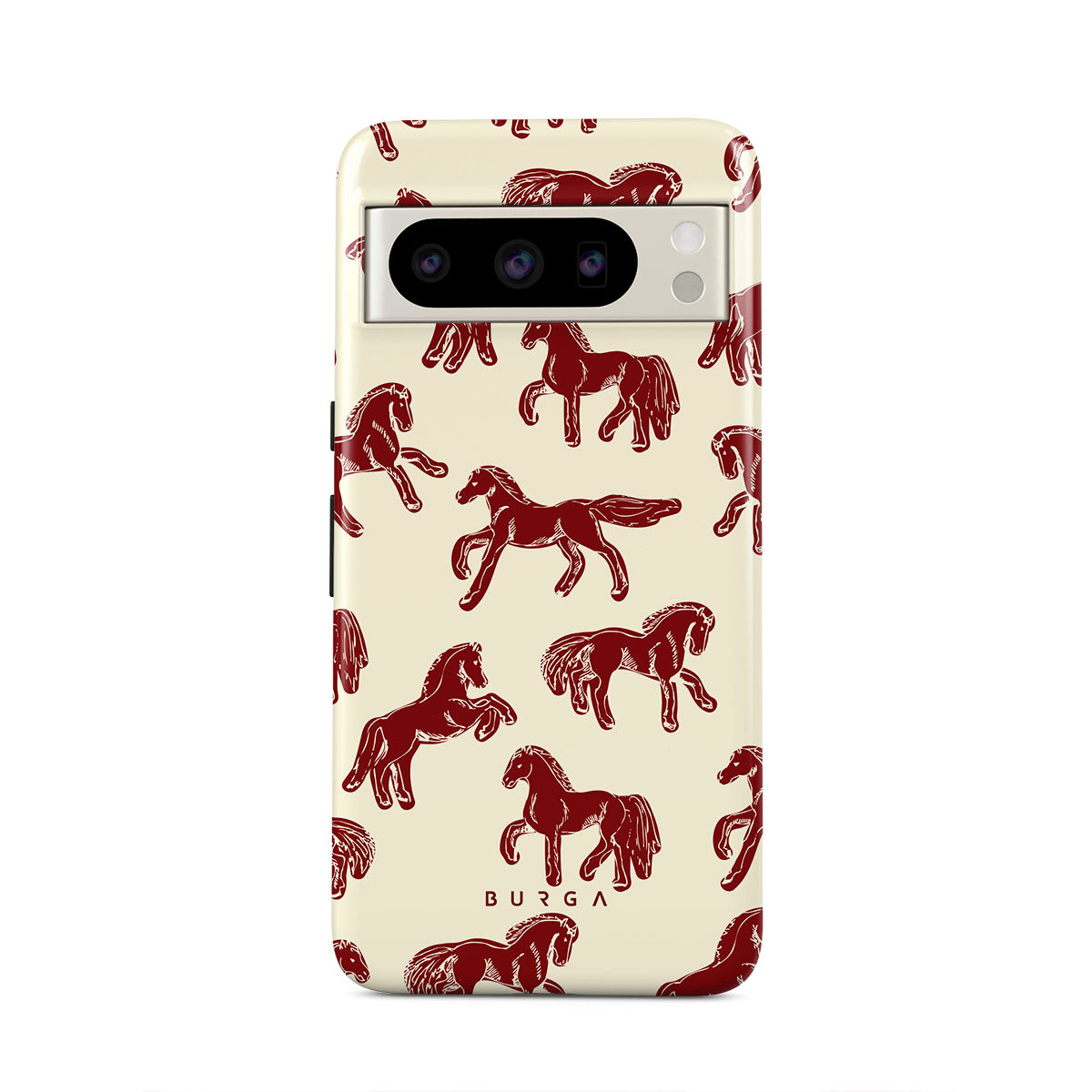 It's time to unleash your wild side with the Mustang design. Bold red horses gallop across a nude background, capturing the spirit of untamed adventure. This Google Pixel 8 Pro phone case is perfect for the free-spirited souls ready to ride into the unknown.